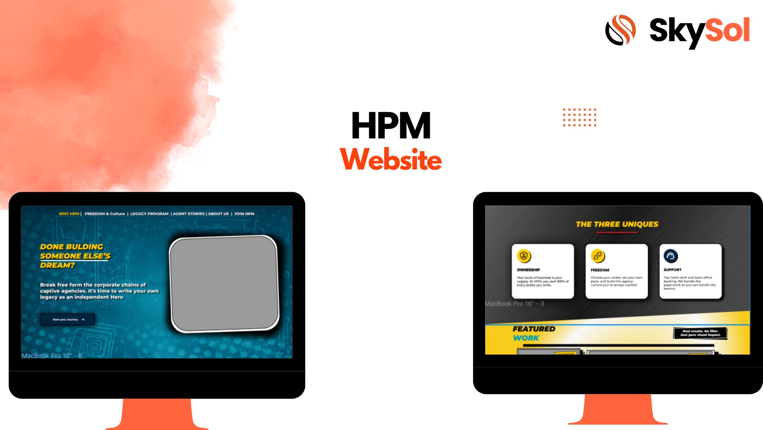 A bold recruitment and brand platform for HPM that promotes independence, ownership, and growth for insurance agents, positioning HPM as a high-performance partner offering freedom, strong support, modern technology, and a 30-day release guarantee to help agents build and protect their legacy.